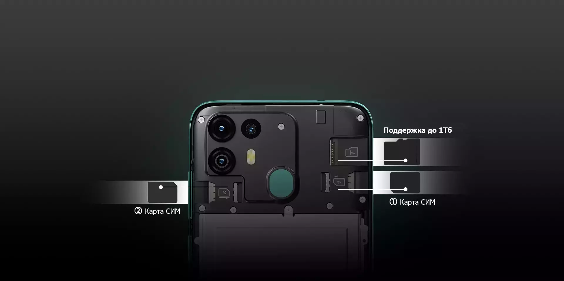 Вы можете использовать сразу две СИМ карты, при этом вставить карту памяти до 1Тб и забыть о проблеме свободного пространства.