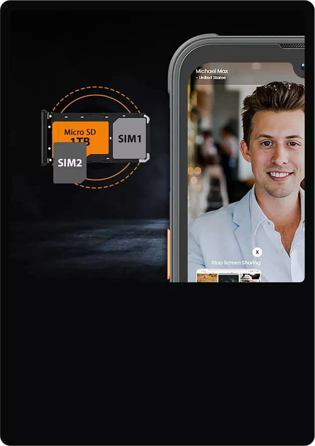 Поддержка 4G LTE двумя слотами - более высокая скорость передачи, уверенность приёма, точность передачи голоса и пониженное потребление.
